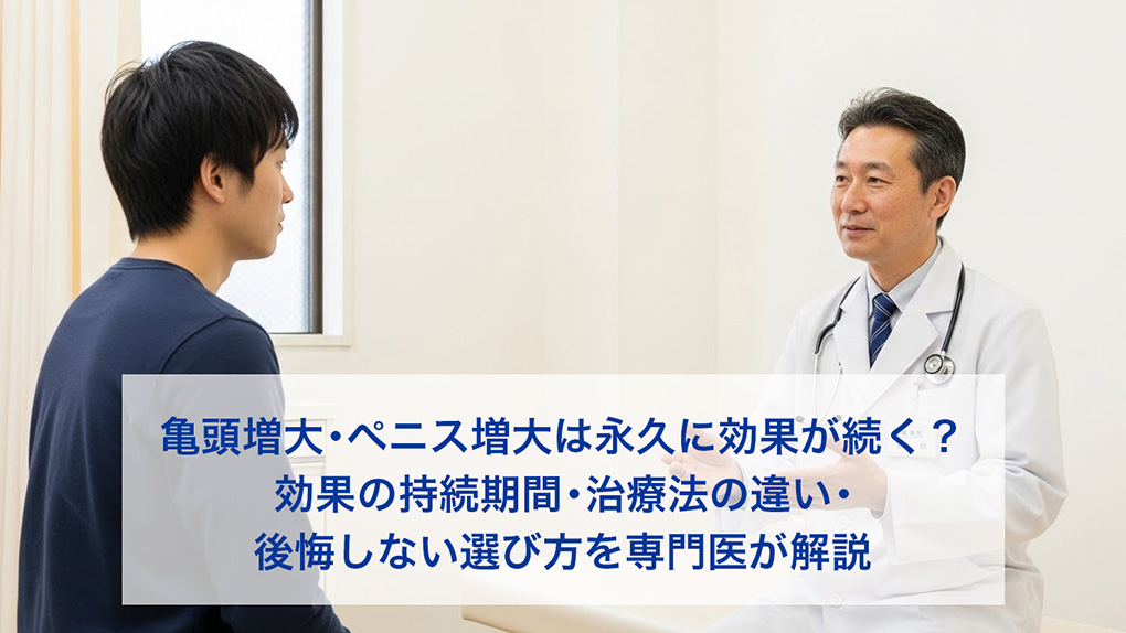 亀頭増大・ペニス増大を検討する際、「効果はどのくらい続くのか」「永久的に維持できる治療はあるのか」と疑問に感じる方は少なくありません。